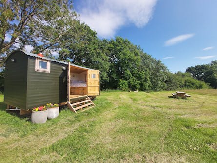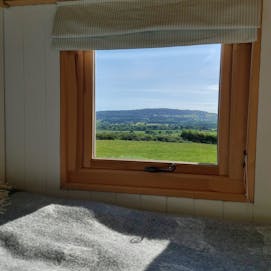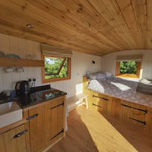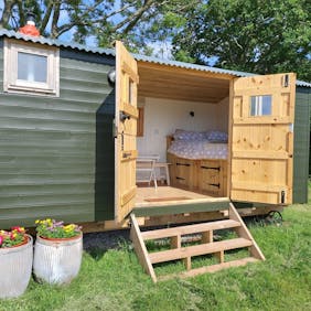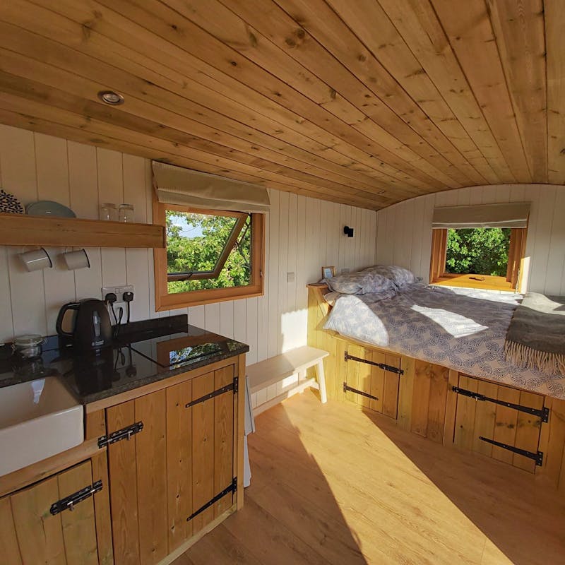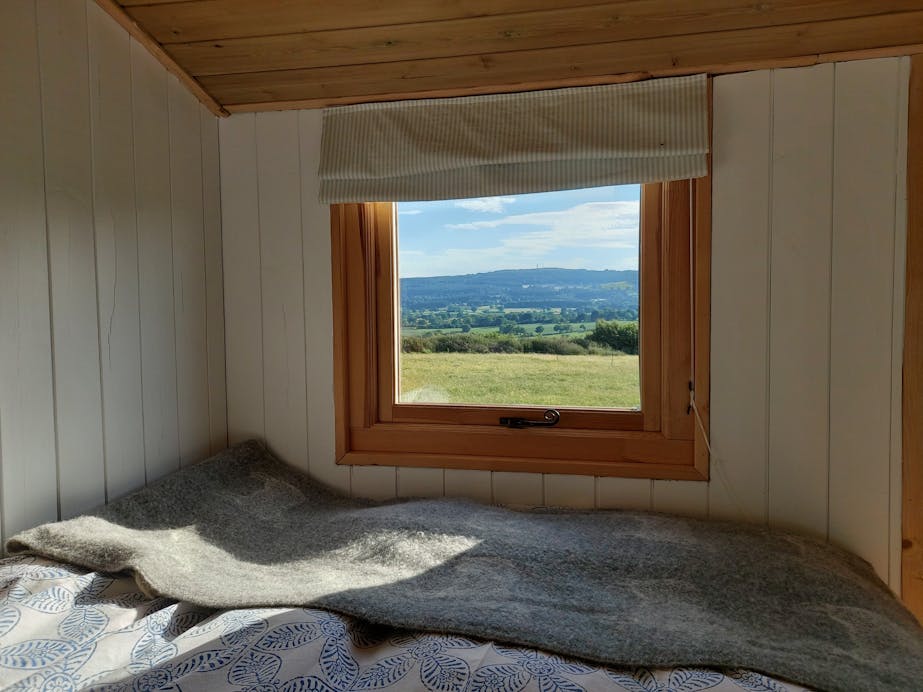 Enjoy the peaceful comfort of our cosy shepherd's hut bed.